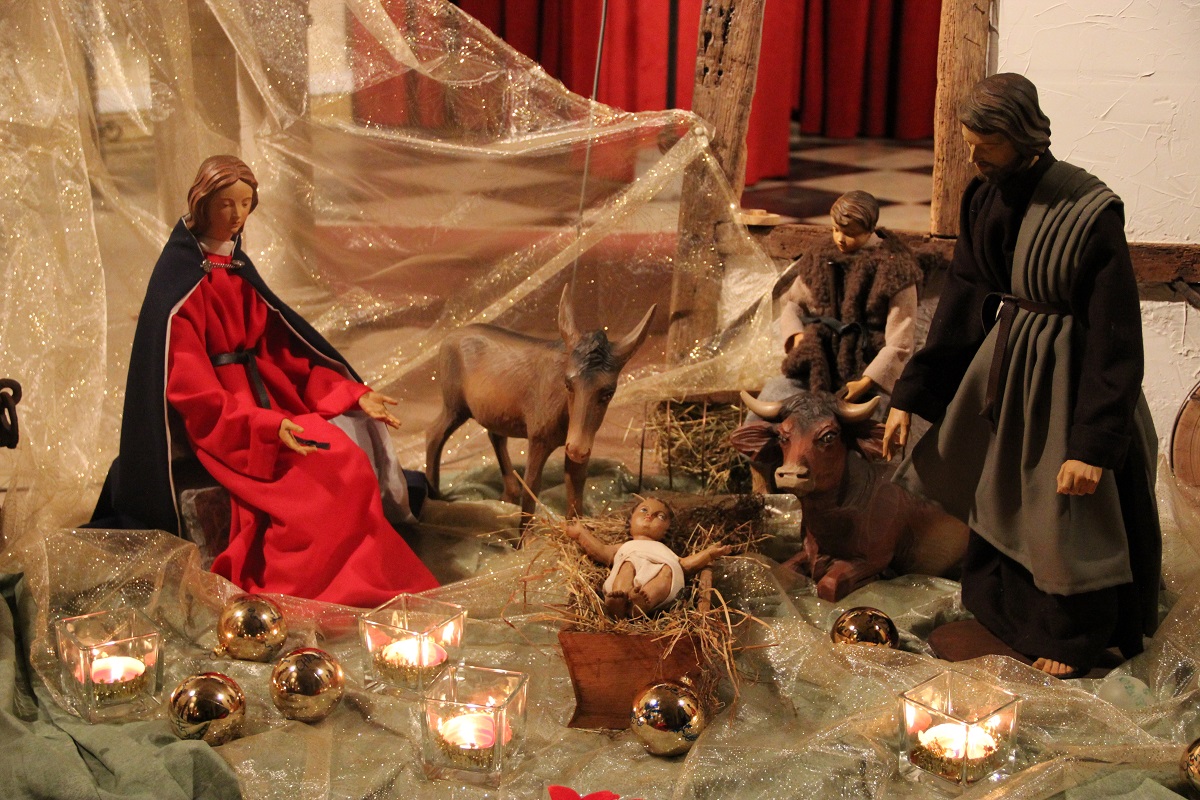 Devant la crèche,