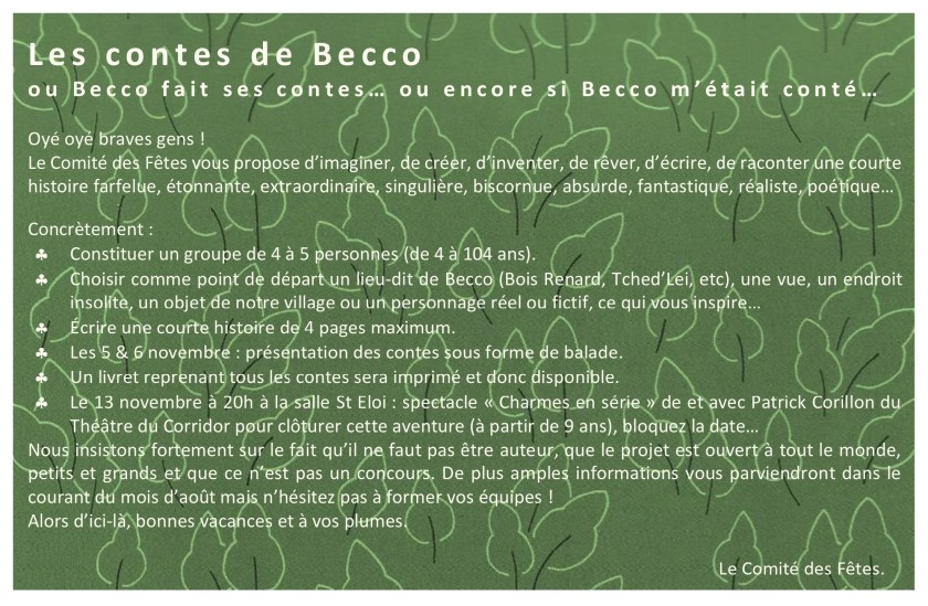 Cette programmation s’inscrit dans le projet « Les contes de Becco » initié par le comité des fêtes de Becco.