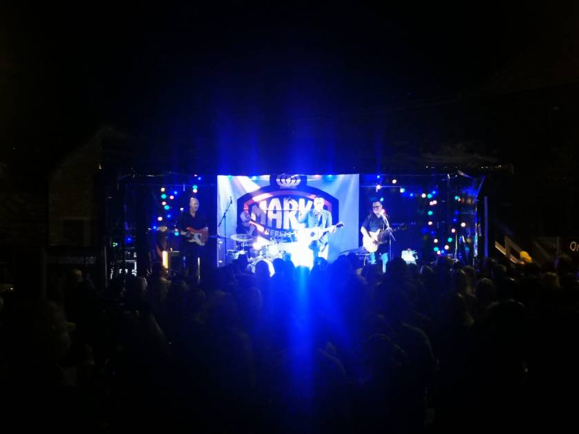 Mais, contre mauvaise fortune, bon coeur : certains se sont réfugiés dans l’église, d’autres au bar 🙂 ou sous leur parapluie. Et pluie d’orage brève et vigoureuse : le concert de Marka s’est ensuite déroulé au sec, pour le bonheur des 300 (?) participants !