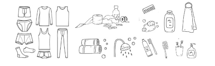 – produits de toilette (matériel, savon, shampooing, …),
